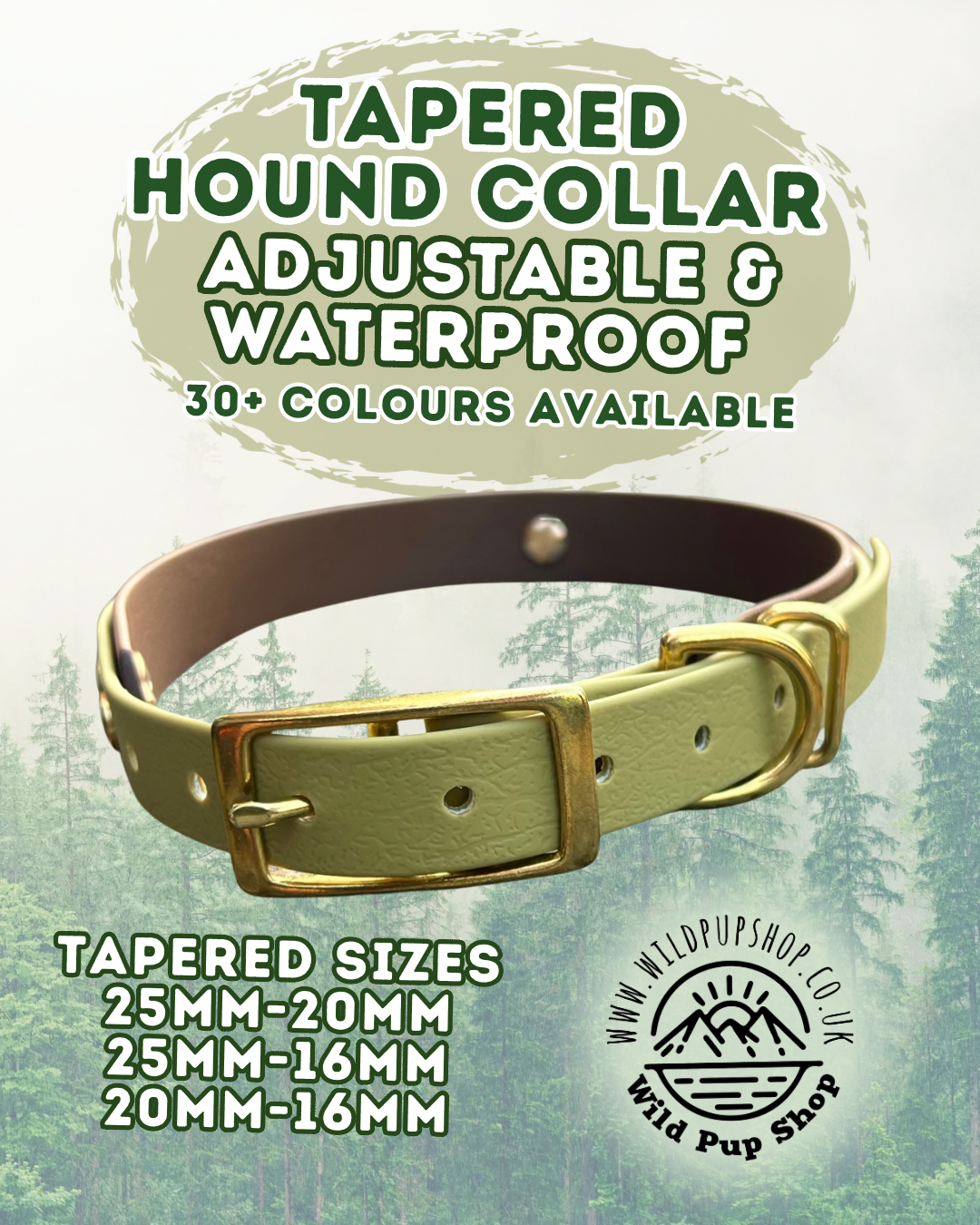 Designed with long necks and elegant profiles in mind, our Tapered Waterproof Hound Collars offer comfort, visibility, and a stylish fit without bulk where it matters.